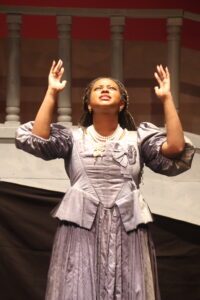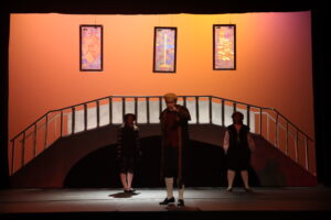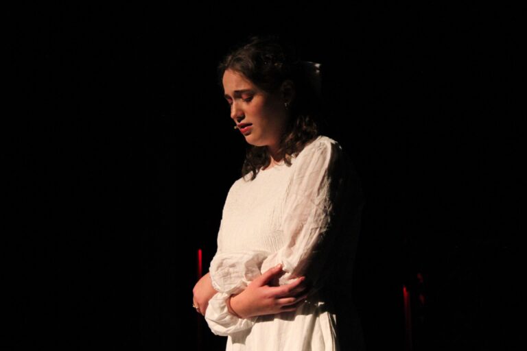 The Brandeis Undergraduate Theater Collective’s recent production of Thornton Wilder’s “Our Town,” directed by Hannah “Phoenix” Feldman ’27, details the lives of the Webb and Gibbs families, along with the stories of several other people in Grover’s Corners, NH, in three beautifully done acts. As one of the most famous American plays, “Our Town” is no easy tale to tackle, but the company of the UTC’s production did a fantastic job. Also, spoilers ahead! Franny Gindi-Chiafullo ’28 led the ensemble as the Stage Manager, someone who exists outside of the same pattern of time everyone else in the play follows. She was not only an excellent storyteller but also an evocative performer; her actions commanded both the timeline and the audience alike, and effectively drove the story forward. The Stage Manager guided the audience through time, specifically following George Gibbs (Luke Benanav ’29) and Emily Webb (Natalie Conklin ’29) as